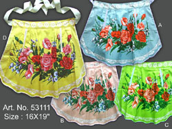 Size: 22X24" Color cotton with applique work hand embroidery aprons. Each design available in Blue, Green, Pink and Yellow material. ˇ@ |