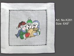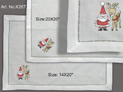new Christmas Designs linen guest towels have just been included The same Christmas Designs hot roll covers, breakfast sets, handkerchiefs, placemats and napkins will be included within these few days. |