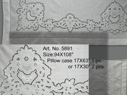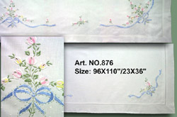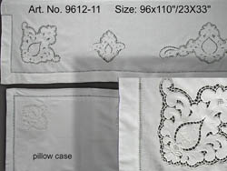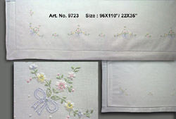 wholesaler of embroidery bed sheets, tablecloths, bed covers, towels, handkerchiefs, doilies, runners, and many other household linens |