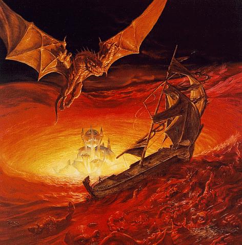 The great city of Istar sinking into what was later to be named just the Blood Sea of Istar. |