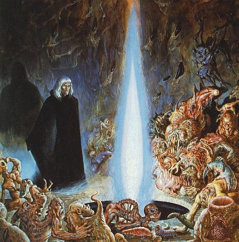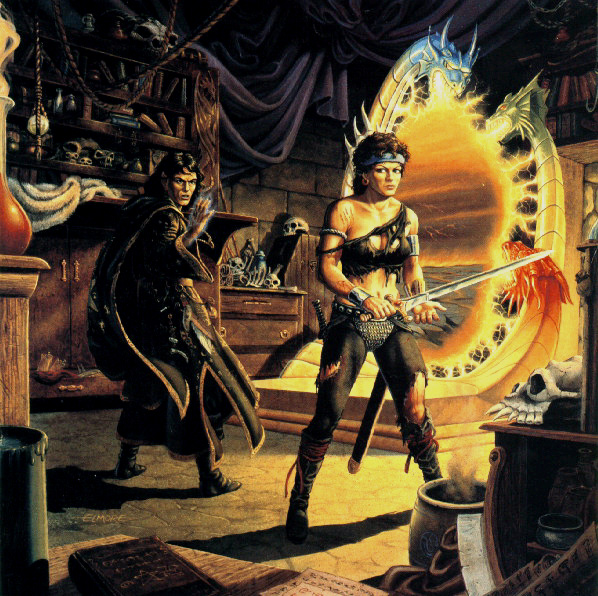 Dalamar, Kitiara and the Dark Portal to the Abyss, in Raistlins study in the Tower in Palanthas |
