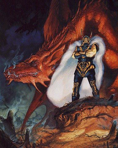 The Dragon Highlord Verminard and his fearsome dragon Pyrus |