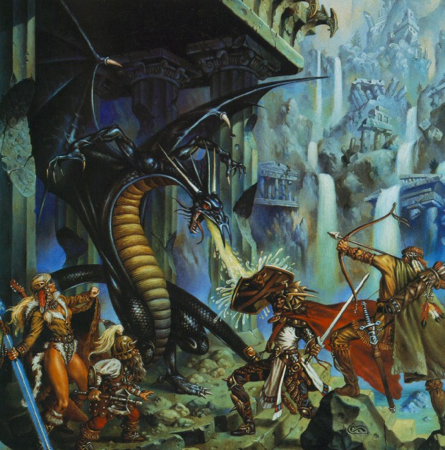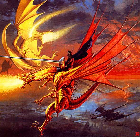 The Queen of Darkness torturing Raistlin in the Abyss |