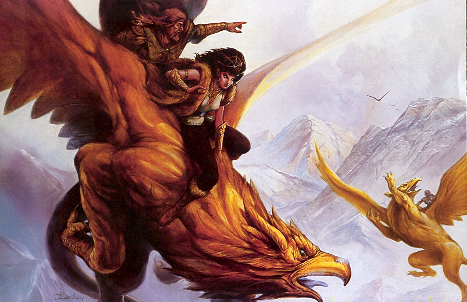 | Alhana Starbreeze and Tanis Halvelven on a Griffon |
