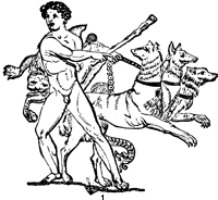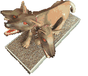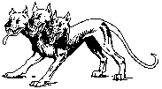 Cer�ber�us \'ser-,b(a-)ras\ n [L, fr. Gk Kerberos] : a 3-headed dog that in Greek myth guards the entrance to Hades - Cer�ber�e�an \,sar-ba-'re-an\ adj cerberus1.gif cerberus2.gif dog.gif