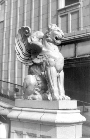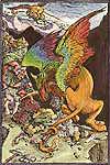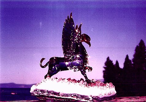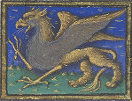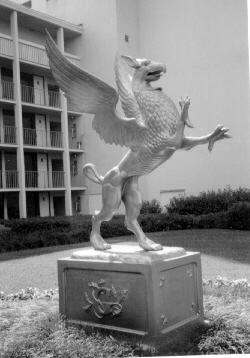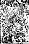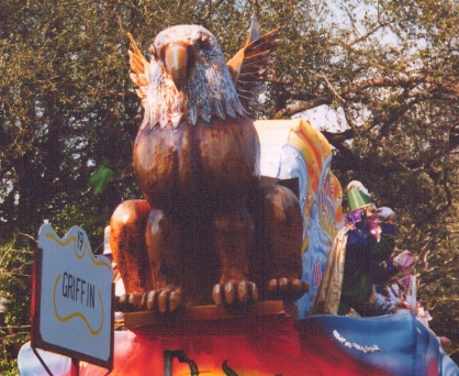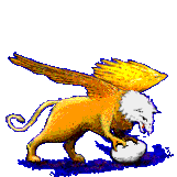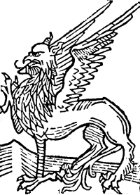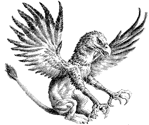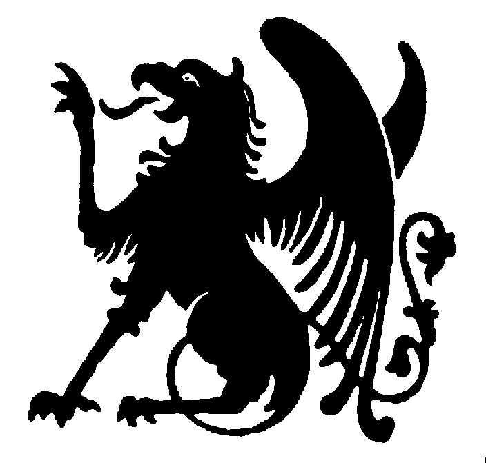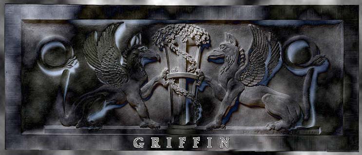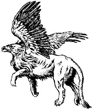 grif�fin or grif�fon \'grif-an\ n [ME griffon, fr. MF grifon, fr. grif, fr. L gryphus, fr. Gk gryp-, gryps, fr. grypos curved; akin to OE cradol cradle] : a fabulous animal typically having head, forepart, and wings like those of an eagle and body, hind legs, and tail like those of a liongryph�on var of GRIFFIN