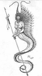 mer�man \-,man, -man\ n :a fabled marine male creature usu. represented with a man's body to the hips and a fish's tail instead of legs � Animated gif