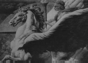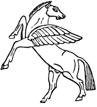 Peg�a�sus \'peg-a-sas\ n [L. (gen. Pegasi), fr. Gk Pegasos] 1 : a winged horse that caused the stream Hippocrene to spring from Mount Helicon with a blow of his hoof 2 : poetic inspiration 3 : a northern constellation near the vernal equinoctial point