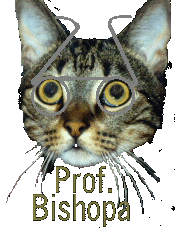 Q: Dear BishoptheCat, I am a seven year old cat living with your ex-owner. Let me just say that you should have warned me about this kook. She's a weird one alright. I can understand why you can get crazy at times. But what I don't understand is why you must persist in the novice art of chewing wires. That is a mystery to me. Why don't you knock things over, or roll in the new laundry like I do, belive me, it relieves alot of tension and plus you get to see their reaction when they put on a nice hairy shirt. If you ask me, to keep persisting in chewing wires and biting, you're just inviting yourself to the pound. Just a concerned bula bula. Take care, BaileytheCat