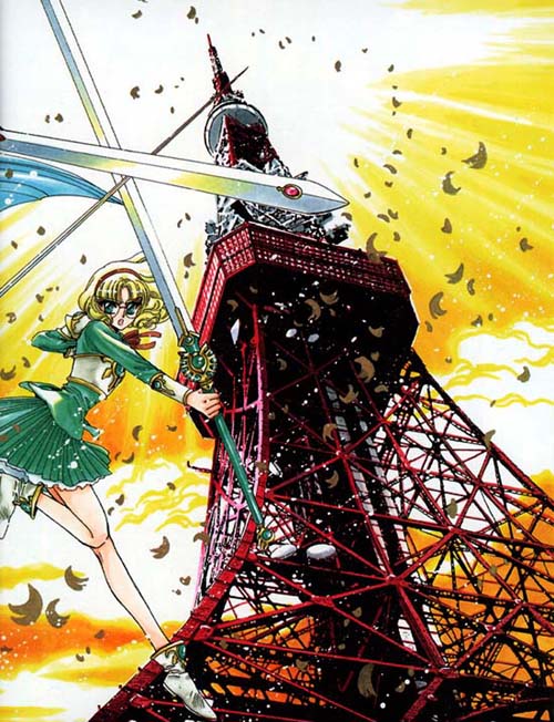 Magic Knight Rayearth is a manga (and later an anime) about three 8th grade girls named Hikaru, Umi, and Fuu. Fate sees the three of them to Tokyo Tower during a school field trip, and after the trio each takes notice of one another, they are suddenly sucked right through the floor and find themselves falling helplessly through the sky.