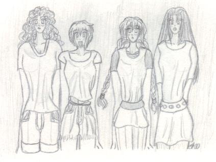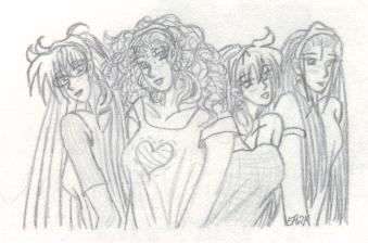 Aha! I've finished the (infamous) portrait pics! A note of caution: I can't draw a guy to save my life. In any case, you SHOULD be able to tell the chars apart now. ^.^*