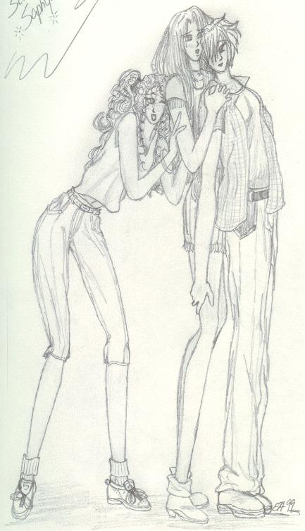 SNM, aka Silver Night Melodies, is actually the result of one of those rare occassions when *I* have a brainstorm! It's a sci-fi/fantasy RPG that Sarah, Jaime, and I play on, about a group largely made up of runaways or lost teenagers. The entire group (as of now; Jacy, Gavin, Kitana, Saph, Kauri, Sky, Ash, Quinn, Thierry, Val(entine), Phebe, Callie, and Bryce) came together, either by fate or chance, some runaways that bumped into one another or some choosing to follow the others for some bond that they feel but don't understand. They each have personal missions, but strangely enough decide to stick together.