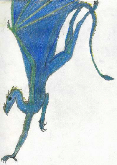 Very Slender, Slimmer than a Green (in proportion). Very Sinewy. Her hide shines metallic blue, the metallic sheen being the only remainder of her once-Golden hide. Her wings are extra-large for her size, nearly too large, but she handles them with ease and they aid her in easy flight. She learned to control them well and flies with speed, grace, and agility, making her an Adept Skydancer. However, she only performed at two Gathers before becoming a senior queen of SilverSmoke Weyr.