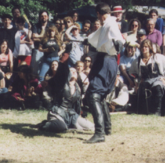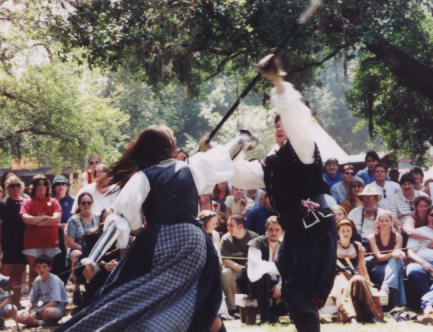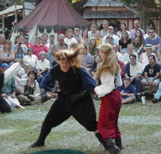Well, here in my world, staged combat is a way of life. I've spent almost nine years working at the Renaissance Festival where three of those years I was a combatant. I love it. Not sure exactly what I would do without it now actually. I'm not nearly as good as I would like to be, but with practice, anything is possible!