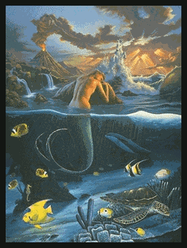| Merrow, or the Murdhuacha (muroo-cha) Kin to the mermaids, the merrow are a strange race of water spirits. They tend to be kinder than the mermaids and mermen, but simultaneously possess a sinister side about which they seem to be quite disingenuous. Stories about male merrow tend to focus around drink. While the males of the species are quite ugly, with green scaly hides, black eyes like those of a pig, and webbed hands with claws, their disposition seems pleasant. If approached respectfully, and especially if offered a goodly drink of spirits, the creature has been known to form friendships with mortals that last a lifetime. It has been suggested that the creature invariably has a red nose because of its propensity for drink. Indeed, male merrow frequent rocky shoals, in hopes that a passing ship that crashes into the treacherous shoreline will be carrying a supply of liquor. The incredibly beautiful female merrow are more complex than their male counterparts and possess an obvious magical focus which may make them vulnerable to a cunning mortal. Often appearing prior to a storm, they have gained the reputation of being signs of destruction to sailors. Prudence, however, is the best explanation for their appearance before calamities, for the creatures crave the sight of mortal males on the decks of their ships but dare not appear in broad daylight as they may be netted and taken back to civilization as trophies. Choppy waves before a storm make an excellent cover for escape and afford them the slim chance that a sailor may fall overboard who they can save before soul is parted from body. According to Katherine Briggs, in An Encyclopedia of Fairies (Pantheon Books, 1976), "the female merrows are a lovely sight, with their flowing hair and their white, gleaming arms and their dark eyes." In addition, they always have red feathered caps or red cloaks, which have some manner of connection to their ability to "move through the water." In game terms, the female merrow, in their pursuit of mortal fishermen and sailors have created magical focii to aid them. The red accoutrement, be it hair comb, hat, necklace or form-fitting cloak, is what allows the merrow to change to her true form. The red item gives her the power to appear as a human woman or, to interlopers whom she wishes to affright, as a cow-like creature without horns. Unfortunately, if the item is lost (or, worse, taken) the hapless merrow may not regain her true mer-form and is stuck in either her human or cow-like form until it is returned. If the red item is possessed by another, the merrow must obey the wishes of that person until such a time as she can regain it and flee to the sea. The more sinister side of the merrow is their habit of harvesting the spirits of those drowned at sea. This is yet another reason why the female merrow (and perhaps likewise the males) keep watch during storms for ships to go down, for when one goes overboard and drowns, and the soul is parted from the body, the merrow collects it and places it in a device similar in appearance to a lobster cage. The merrow act quite innocently in regard to this practice, claiming that the poor souls were so freshly out of their bodies that they had to be kept warm by placing them in the cages. It is quite likely, however, that the fascination of the females of the merrow folk with mortal men extends to the collection of their souls, perhaps to listen to their voices tortured though they may be. These "Soul Cages" may be safely opened and their prisoners freed without notice, if only the male merrow are present and distracted. Even afterwards, the males cannot tell one way or the other whether the cages are still full. But when the females return, they will know immediately--and many a male merrow has known the sorrow of being an unobservant guardian of her treasures! Merrow are, like many fae, actually spirits capable of materialization. When they enter the depths of the ocean, they actually step into the Umbral oceans and may take sailors there with them, effectively saving mortals from drowning in this manner. This ability to part the umbral shroud for mortals also has the added benefit of befuddling the memories of any mortal who subsequently tries to remember what transpired in their underwater kingdom. Willpower 6 Rage 4 Gnosis 10 Power 30 Charms: Airt Sense, Cleanse the Blight, Flood, Healing, Materialize Special Notes: Females may alter appearance to seem a human female or cow-like hornless animal by using their special red item. When materialized, merrow typically take the following characteristics, although there may be considerable variance depending upon how many power points are expended: STR 2, DEX 4, STA 5 (especially males, who like to drink) CHA & MAN (use Willpower for all social rolls) APP 7 PER, INT & WIT (use Willpower) Abilities: Sing 4 (or Brawl 4 for males), Expression 2 Quote: "We are meroo-cha, and a very good day to you, young handsome stranger." |