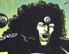 A crime boss, who uses eight balls with different abilities to committ his crimes. Crazy 8 is also a skilled acrobat and kind of a jokester. Originally a big man in the crime world. The thefts caused by his gang caused him to come into contact with Spider-gil. He hates Spider-girl almost more then anyone after she stopped his warehouse heists and kept him from escaping trail. He wants to make her pay with a vengence. Besides maintaining his criminal organization, Crazy Eight also keeps tabs on his younger brother, Funny Face.