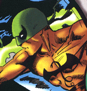 The first failed clone of Peter Parker. Kaine suffored through life knowning that he had no life. He created a costume to slow down his degeneration and plagued Ben Reilly, Peter Parker's other clone for years. He eventually returned and was killed by Spidercide, another clone of Peter Parker. However, he was ressurected and once again plagued the life of Spider-man. He eventually shadowed Norman Osborn and stole May Parker when she was baby from the Scriers and return her to Peter and Mary Jane. Kaine then wondered trying to find meaning in his life. He sought out Zarthros the spirit of Vengence and was cured of his clone degeneration and found employment under the Kingpin. Following the death of Daredevil, Kaine tried to make up for his past mistakes, he returned years later to kill the Kingpin for revenge. He was defeated by Spider-girl and ended up in jail for a short time before being paroled. He was attacked by the Scriers and Zarthros and walked away badly injured. What has become of Kaine is unknown, but he is out there, waiting for his next move.