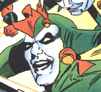 Little is known about the crazed killer known as Funny Face. He aparently choose to be a costume villain by choice and his insanity is only matched by his strange weapons. Using a jester spector that he calls "Bumpy". Funny Face originally intended to destory the costumed Darkdevil. Before crashing in to Midtown High's school dance. He ended up fighting it out with Spider-girl and the Buzz. After a long battle, Funny Face made a hasty retreat. He returned and brought together five of Spider-girl's worse enemies to form the Savage Six. It was revealed that Funny Face is the younger brother of Crazy Eight, and that they two are constantly trying to prove the other wrong. With who can commit crimes better.