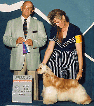 Wesley is sired by Ch. Romeo's Diamond Joker and his dam is Ch. LaBaron's Sierra Mist. This young Champion male is our foundation sire with his style and effortless movement Wesley stormed right into his championship getting both majors (13pts) and two varieties over specials in the puppy classes. He is pictured here with his daughter Crystal Wind Vision of Lace (Cassey) She will be following her father & older siblings working her way to her championship watch her in the fall of 98 to start her show career. Cont. on . . . . Picture comming soon
