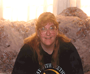 Psoriatic Arthritis is the name of the culprit that is causing me to be off work, now. It's no fun. Basically, my immune system has decided to kick into high gear. This sounds like a good thing, but it isn't, because it has become so aggresive that it thinks any pressure or bump on a joint is something it needs to rush to heal and protect - which means my joints swell a lot and some have warped under the continued pressure. I'm undergoing a light form of chemotherapy (methotrexate) for this. The process is slow. Between all this, I kinda feel like Tokyo in the middle of a Godzilla movie. The battle changes daily and I have my ups and downs... and a lot of naps! This second picture is one of me. From the look of it, I've just been napping again. People with cameras really are our friends... but they should be careful where they aim those things. Especially in the early a.m. UPDATE:New drug added to my bod - Arava. Another way to attack the immune system. Warnings include the fact that it might cause hair loss. *sigh* I'm trying to keep optomistic. "Hair loss? Does this mean I won't have to shave my legs as often? Whoo-hoo!!!" Hahahahaaa... UPDATE - 5/03: Still out of work. We've added Remicade to the methotrexate. It's helping a bit. Keep your fingers crossed!