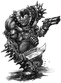 4 | 6 | 3 | 4 | 4 | 1 | 3 | 3 | 7 | Bolt Pistol, Auto Pistol, Sword, Killer rep. Berserk Charge, Crushing Blow, Partially Deaf | 208 |