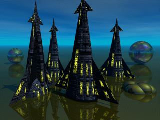 This is totally and completely nothing like what the Tower really looks like, except for in MY mind's eye... Something about all the lights and the reflections from the ground remind me of what it should look like to those that have access to the Astral Plane...