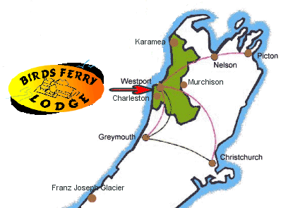 From Nelson, 6km out of Westport take the turn for Greymouth