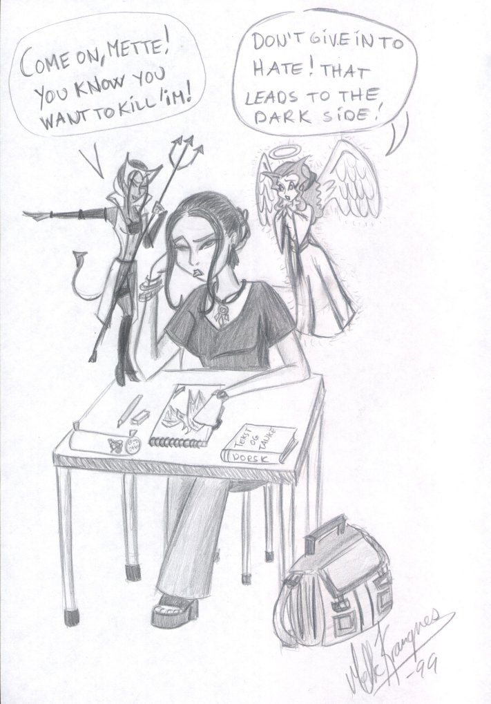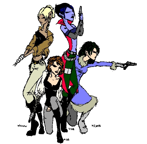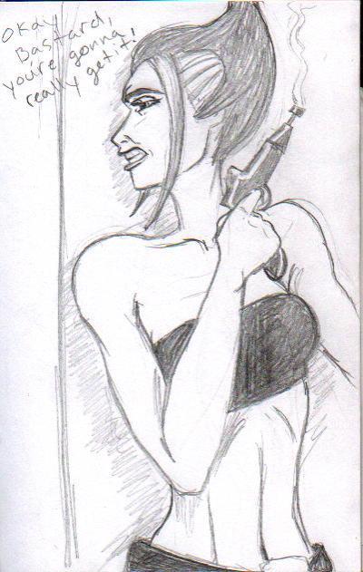 One kick-ass drawing of us girls with guns by Willow! Both inked and