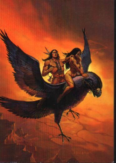 The plainsman are similar to the American Indians. They are very strong in their ties to the land and nature. Their worship is mostly focused on animal spirits, through which they in fact worship Gaea. They have great respect for the beasts of the lands and will use every part of an animal they kill. They also only kill when needed, this includes other people. They believe that life is very sacred, but are very deadly when threatened. They band together in tribes that are ruled by the elders or those too old to be able to hunt. The women and men are equals and share responsibilities. Plainsman are restricted in Class to Ranger, Druid, Cleric, or Mage. They can Multi-Class as Ranger/Druid, Druid/Mage, Cleric/Mage, or Ranger/Mage. The tribes rarely band together except to face a common foe. Occasionally a tribe will move through another tribe's territory, when this happens the "host" tribe will offer guides and supplies as well as hospitality in their lands, but this happens rarely as the tribes tend to stay to their own territories. The plainsmen are scattered throughout all of Calidair. Each tribe chooses a main totem for their worship, usually an animal indigenous to the region they are in that they rely on the most. Most commonly are Buffalo, Wolf, Eagle, Hawk, Deer, or Elk, but any animal is possible.