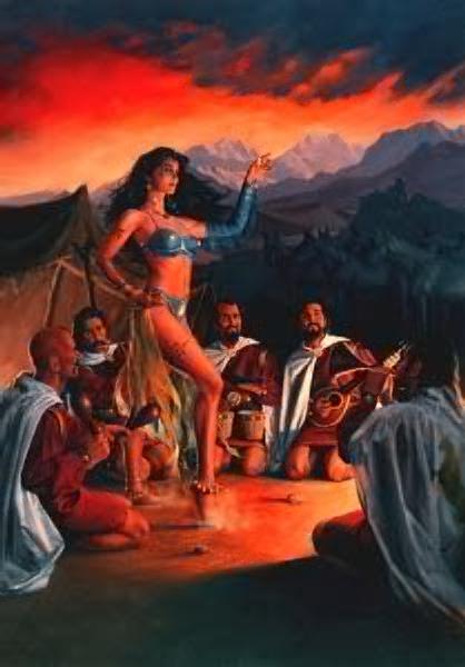 Barbarians are a warlike people. They live in clans, mostly in the tundra regions of Calidair along the northern mountains that surround the Great Rift. They can be easily spotted by their very muscular build (even the women) and they are always wearing natural skins (Hide Armor or Leather Armor). Can multi-class as Fighter/Cleric, Fighter/Druid, Ranger/Cleric, or Ranger/Druid. They are restricted to the classes of Fighter, Ranger, Cleric, or Druid. Hierarchy of the Barbarians is determined by strength. Even a woman may rule a clan if she is the strongest in that clan. Yearly contests are held to determine a new clan leader as well as a yearly gathering of the clans to decide which clan speaks for all Barbarians. No matter who is in charge, the advice of the tribal shaman (cleric) will always be listened to, even by the Clan's leader. The shamans tend to worship Mordred, Fenris, and Gaea
