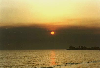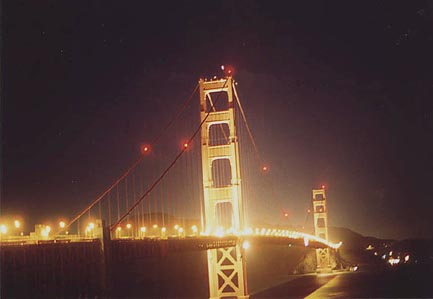 I don't think it would take you long to figure out where I took this picture!! I know...the bridge looked like it was on fire. I had my shutter opened for too long :( Using my fully manual Nikon FM2N camera, I put the shutter speed on "B" so that I could expose it for 30 seconds. Little did I know that 30 seconds could *burn* the bridge! I thought the night was pretty dark and totally forgot about the lights around and decorating the bridge. Although it was a half failure, I still like it, thus posted here, because of the aurora-like effect (in the center) that the picture brought about.