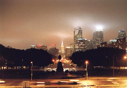Yes, this is the city of Brotherly Love, Philadelphia. I took this picture at the steps of the museum, where Rambo performed his *triumphant morning jog* up the stairs in the movie. Cool...huh? I know you don't care, alright, let's talk about the picture itself instead. Again, I had my shutter speed on at 1/30 (I think) of a second. You can actually tell by the *fuzzy* images at the bottom of the picture. Those are cars that were driving by. I deliberately waited for them to zoom across my viewfinder before I took the picture. I also have another similar photo that was exposed even longer, where the cars showed up as streaks of yellow and red lines.