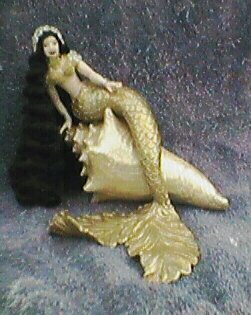 May I present Lydia the Mermaid in all her glamor!I simply loved this mermaid doll when I saw her. In fact as I watched pics of her as Shelly was working on her, I was already falling in love with her. Here she is, looking like a golden mermaid princess seated on top of a seashell. Lydia the Mermaid is one of the very first mermaid dolls in my collection; and today she remains one of my favorites.
