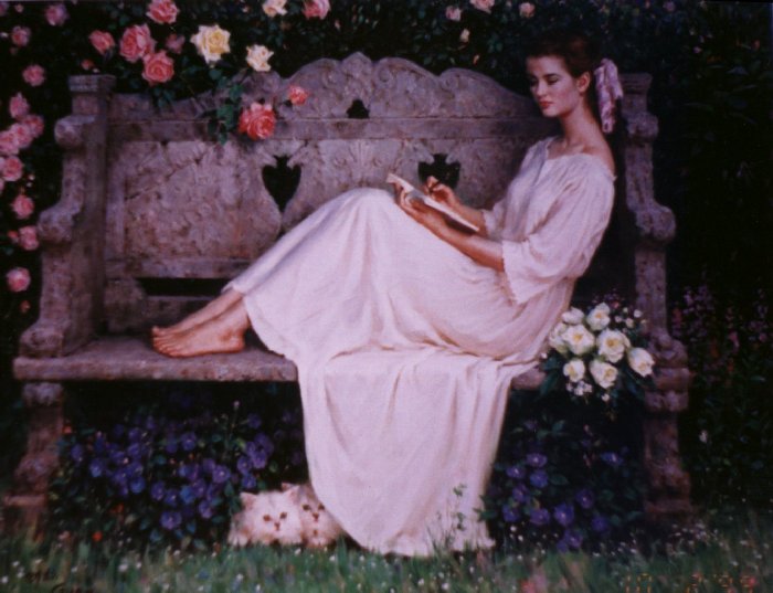 Guan "In The Garden" 34" x 26" Framed: $170.00 Print only: $30 |