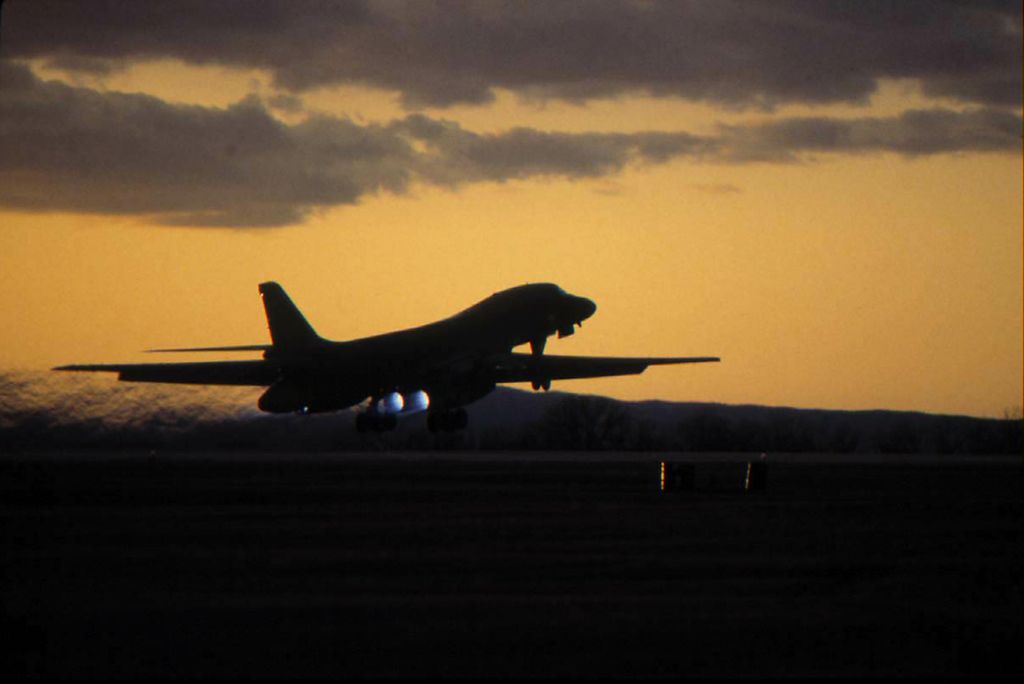 Size: (42 KB) Type: JPEG Comment: A B-1B taking off at sunset |