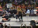 TONY ROSS: Enough of this nonsense! I'm not gonna get suckered into this lunacy! (shakes his head as he gives Shades one last glare...) Fans... I apologize for this RIDICULOUS interruption.... Like I was about to say before SOMEONE (looks toward Shades who is picking his nose) interrupted by arriving LATE.... was that if you thought the Kiel Center rocked then we're gonna BLOW THE ROOF right off the Kemper Arena tonight!!