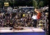 TONY ROSS: "Here we go!! The FWF National Title is on the line here and this is going to be an all-out brawl! Both men immediately begin pounding on each other and their adrenaline is rushing so hard they don't even feel the blows!"