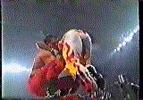 VICTOR ALVAREZ: Never in my years of broadcasting have I seen something quite like that. I have to wonder exactly what Henry Goldwire was thinking. Had he actually burned Sage, we could have been looking at a career ending situation. No doubt these two will hook up again in the near future. The next match was a special six-man tag team challenge pitting the Birds of Prey, Shrike, Falcon and Condor against the Mercenaries, Steve Lewiston, Rob Anthony and Jean Rabesque. This match was quite exciting as the momentum swung back and forth. [STILL SHOTS: Condor with a plancha on Anthony, Rabesque with a reverse chinlock on Falcon.] The match seemed to boil down to exactly who wanted it more...