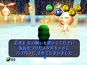 7. Link visits the big fairy. "Make your way to the Wise Man", she tells Link. On his way, Deku-Link meets this young boy. The boy wants to play a game, Link wins and the boy shows him the direction to the wise man's home.