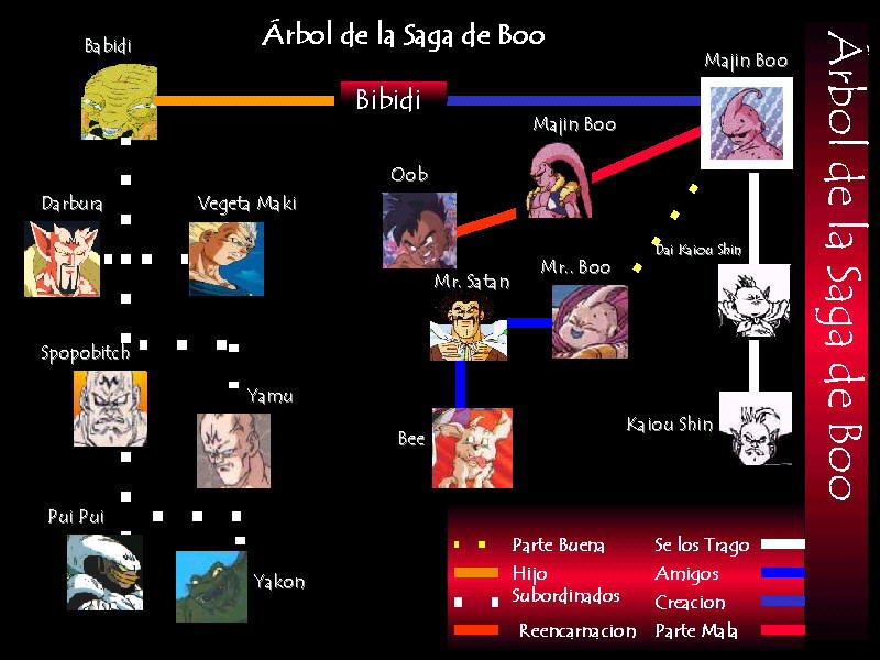 1.-Partiendo de Majin Boo, tenemos que que fue creado por Bibidi, este tuvo a su hijo Babidi.