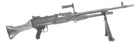 A 7.62mm belt-fed machine gun. There is a -8 hit penalty due to the recoil, unless the user is in a stable firing position (i.e. prone, braced against a wall or such, then the penalty is lowered to -4), since it fires in full automatic mode only. However it is very useful for providing covering and support fire.