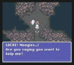 After a long sequence you find it neccessary to go through the back door into the mines again. Pick up the treasure chests, use the save point, and continue straight until u fall into a pit. After plunging down the pit, you'll have a flashback, after which a conversation between a young thief and the old man ensues. You get to name the thief now, but I'll just call him Locke. Anyway, Locke has to go and help Terra in the pit, but when he arrives, the 2 are discovered by some guards and monsters. Mog and some other moogles aid you against the threats and tell you how to protect Terra. You'll split into 3 parties. Have the party with Locke and the party without Mog block the way to Terra. Have the party with Mog go and kill the monsters. Heal when neccessary. When you get to the Marshall, have mog Dance Dusk Requiem, and concentrate your attacks on the Marshall once the monsters are killed. This fight shouldn't be too hard. After you kill Marshall, a conversation between Locke and Terra ensues Locke tells you to remember the secret passage. Be sure to. You may want to go to the building outside the secret passage way and gain knowledge of the game as well as use the recovery water. If you try to enter the main part of Narshe, you are forced out by guards. Leave the town and go to Figaro Castle as Locke Suggested.