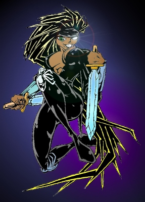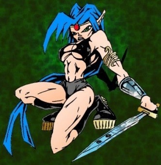 ELVAN Drow Elven Chaotic Neutral (Evil) 3rd level Fighter / 3rd level Thief Her left eye was replaced with a magical glowing orb. Two identical orbs adorn the pommels of her crystalline short swords. The orbs are said to have great power, but she currently has no knowledge of them. She was recently given a gift (curse) which has imbued her with a number of minor magical powers that grow as she increases in levels.