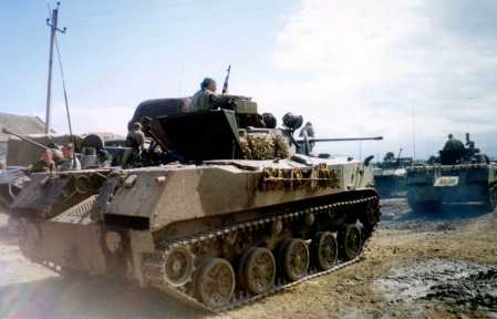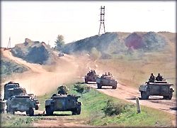 Columns of AFV rolling into Chechnya.