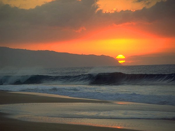 Here is our famous beautiful sunset at Waimea Beach on the North Shore of Oahu.