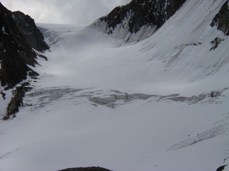 Riesige Verwerfungen im Gletscherfluss an einer Diskontinuität im Untergrund.