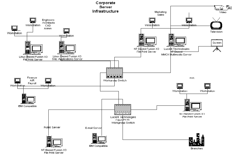 structure. The components are as follows: 8 FusionX3 servers 4 NT based file/print servers 2 Linux based File/Print server