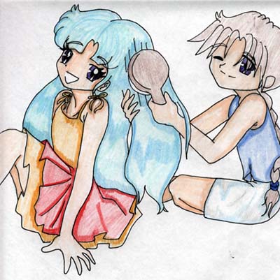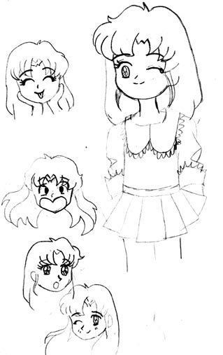 Next is the pink hairdo girl on the left, her name is Magike (Curly), Curly is mischievous, loud and adventurous but fun loving. She's usually the first to volunteer to get into a mess, and the last to get out. She's sneaky and clumsy, not a good combination, but altogether a good-natured person. She was a third person to join.
