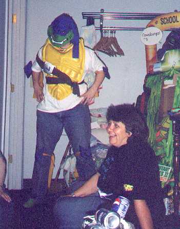 The final part of the night involved Don modelling the Leo costume acquired from Molly at Mirage. Unfortunately, it was a child's costume and the fit was not quite right for Donnie. Evidently, there exist pictures of Brent wearing his costume (he had won one as well), but he managed to squeeze into more of the outfit. There exists a story about Brent's costume, but I'm not going into it here <EG>.
