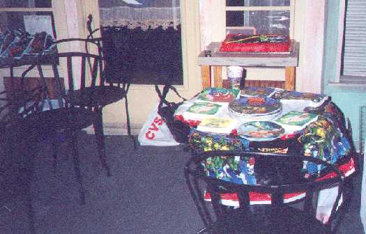 Here is a shot of the party area. There's a fine mix of TMNT stuff (plates, cups, napkins, tablecloth).